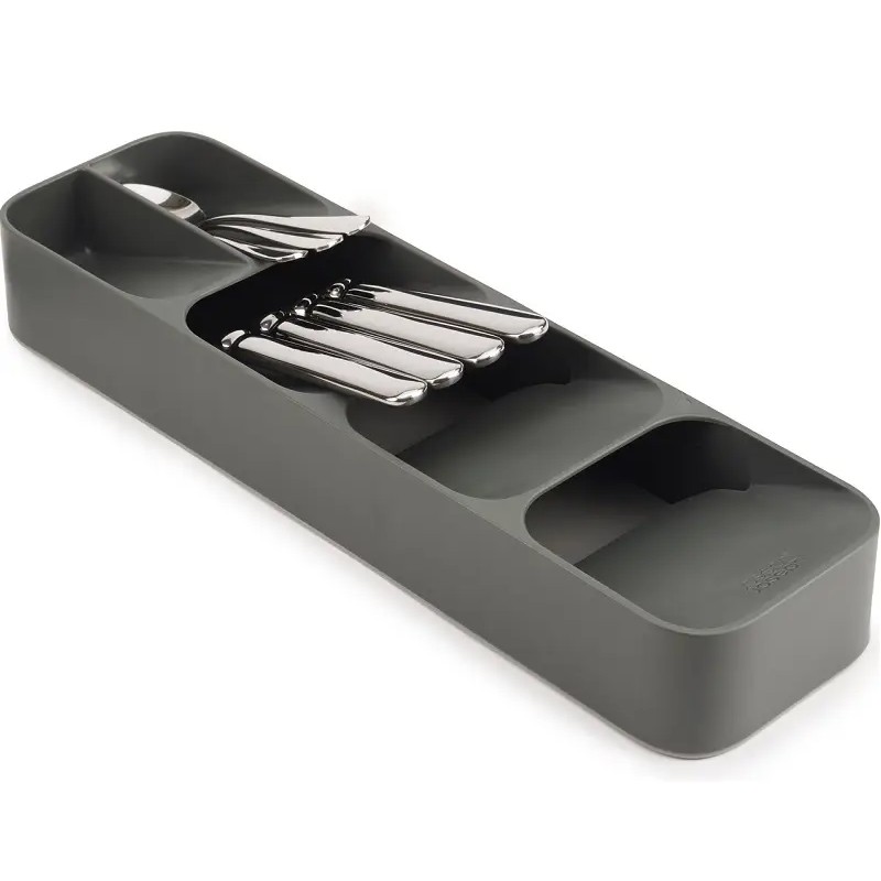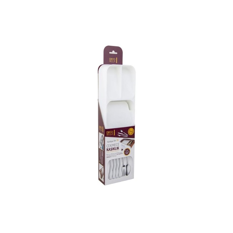 Organizatorul pentru tacamuri introdus in sertar aduna la un loc in 5 compartimente: 6 lingurite la partea superioara, 6 cutite, 6 furculite si 6 linguri.