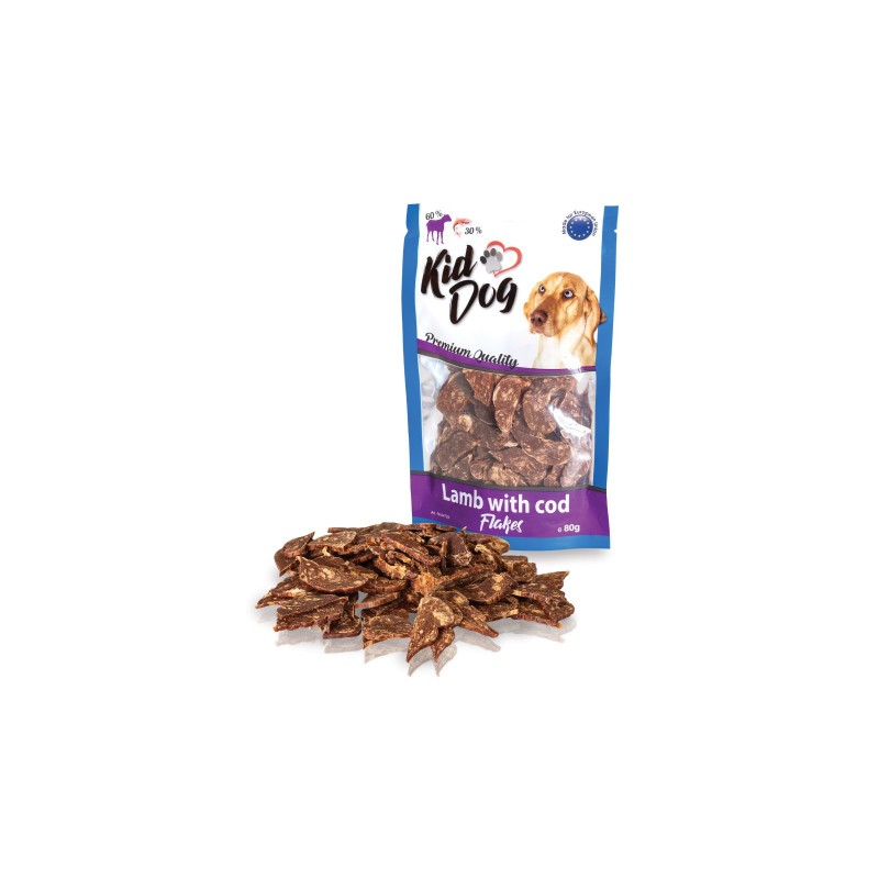 KidDog Recompense Pentru Caini, Fulgi De Miel Cu Cod, 80 g