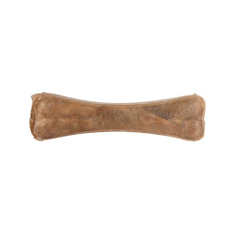 Recompensa de mestecat sub forma de os presat pentru caini este un produs delicios si sanatos, ideal pentru a satisface instinctul natural mestecat al catelului. Aceasta este fabricata din 100% piele bruta uscata, ceea ce ii confera o textura robusta si un gust atragator.