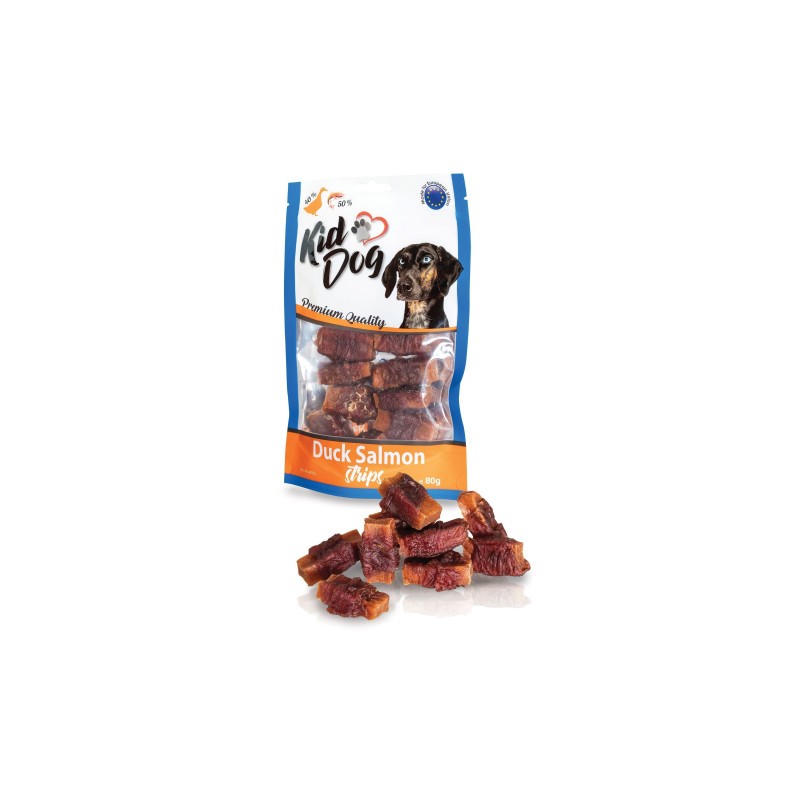 KidDog Recompense Pentru Caini, Fasii De Somon Invelite Cu Carne Rata 80 g
