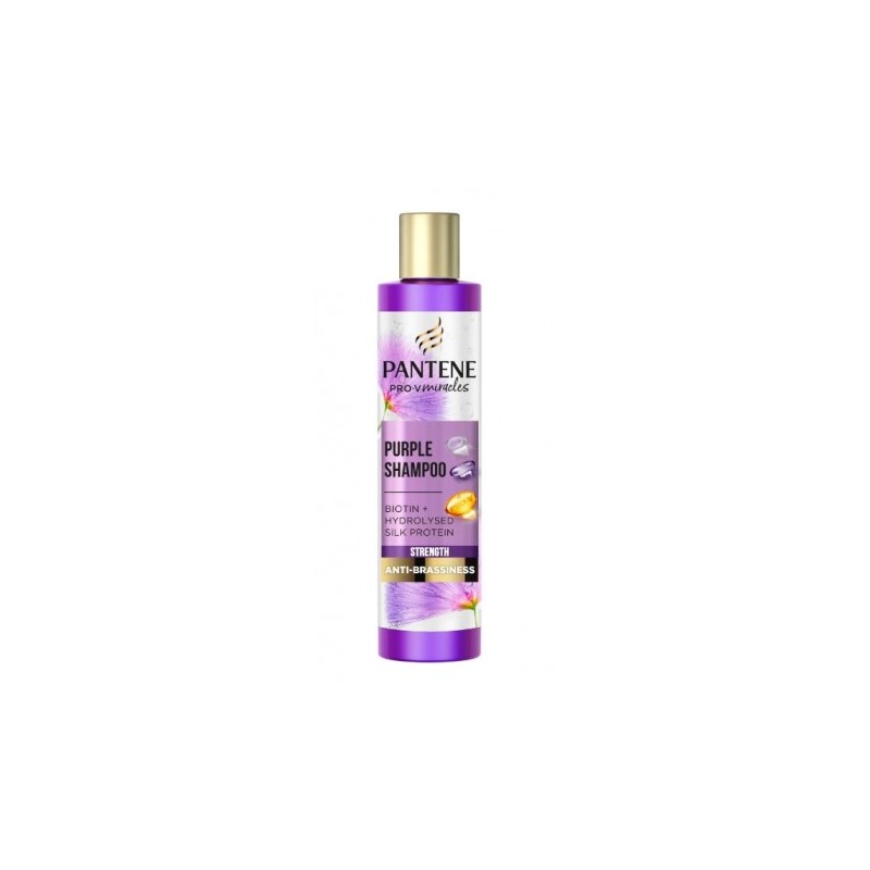 Colecția Pantene Silky & Glowing combină efectele Pro-V și biotina și proteina hidrolizată din mătase. Șamponul Purple Pantene Pro-V Strength & Anti-Brassiness pentru păr decolorat sau evidențiat ajută la neutralizarea luminii alamie și la restabilirea rezistenței părului după o singură spălare (rezistență la deteriorarea condiționării în comparație cu șamponul fără ingrediente de condiționare).