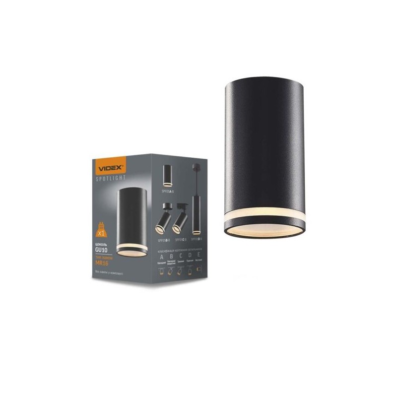 Spot proiector de tavan Videx GU10-CARMELO-BLACK