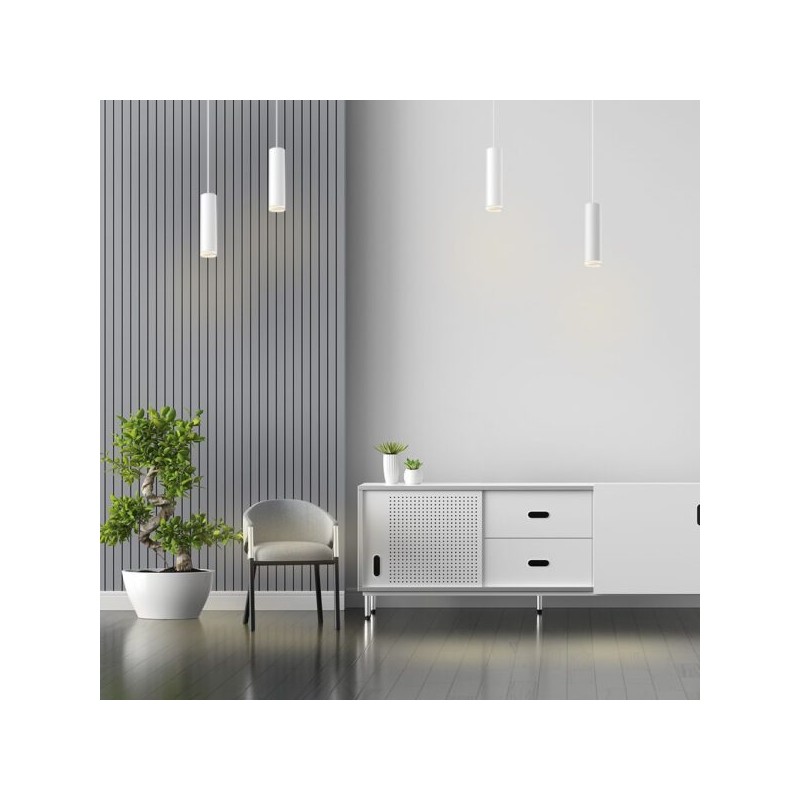 Corpul de iluminat suspendat decorativ interior este proiectat pentru iluminarea apartamentelor moderne, barurilor, restaurantelor, cafenelelor etc. Este adecvat pentru loggii și coridoare, precum și pentru zone separate în camere mari. Corpul lămpii este fabricat din aluminiu – un metal ușor și durabil care nu se corodează. Suprafața carcasei este acoperită cu vopsea mată cu textură nisipoasă, rezistentă la zgârieturi minore. În funcție de tipul de lămpi utilizate, această lampă poate fi folosită atât pentru iluminatul general al încăperilor, cât și pentru iluminatul accentuat al zonelor individuale din interior. Corpurile de iluminat cu Sursă lumină înlocuibilă au avantaje, cum ar fi lipsa necesității de a înlocui întregul corp de iluminat în cazul defectării unui bec.