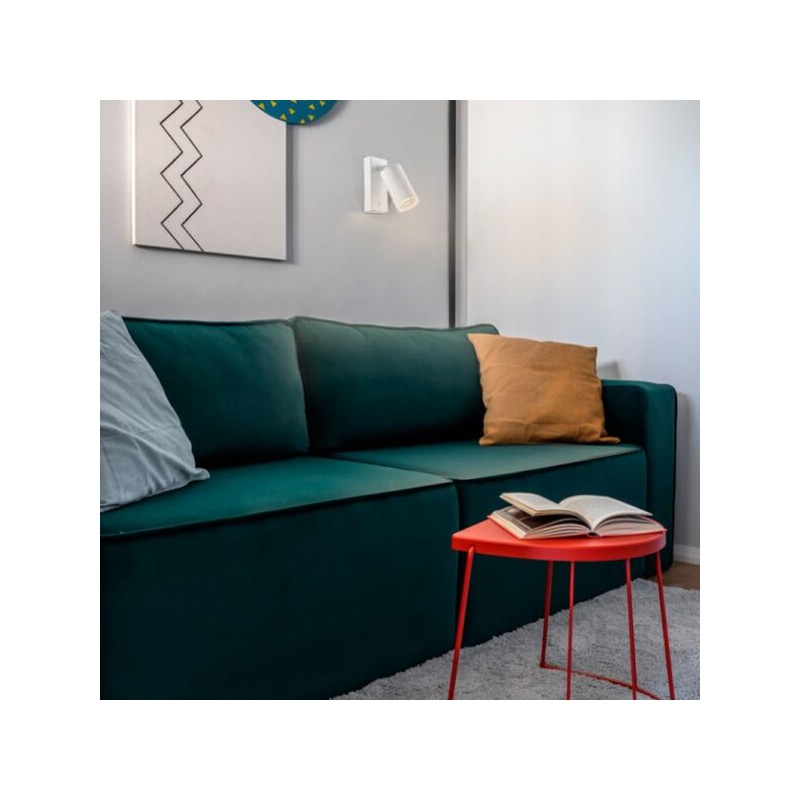 Corpul de iluminat decorativ de perete este destinat instalării lângă canapele, fotolii și paturi. Cu un întrerupător mecanic, este ideal pentru citit și iluminatul de noapte de lângă pat. Corpul lămpii este fabricat din aluminiu – un metal ușor și durabil care nu se corodează. Suprafața carcasei este acoperită cu vopsea mată cu textură nisipoasă, rezistentă la zgârieturi minore. În funcție de tipul de lămpi utilizate, această lampă poate fi folosită atât pentru iluminatul general al încăperilor, cât și pentru iluminatul accentuat al zonelor individuale din interior. Are un design rotativ care permite focalizarea luminii asupra zonei dorite. Corpurile de iluminat cu Sursă lumină înlocuibilă au avantaje, cum ar fi lipsa necesității de a înlocui întregul corp de iluminat în cazul defectării unui bec.